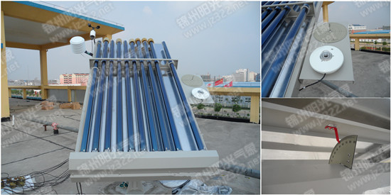 2、全玻璃真空管测试台台面装有日晷,具有太阳光点对正功能,侧面安装辐射表及风速仪等传感器。