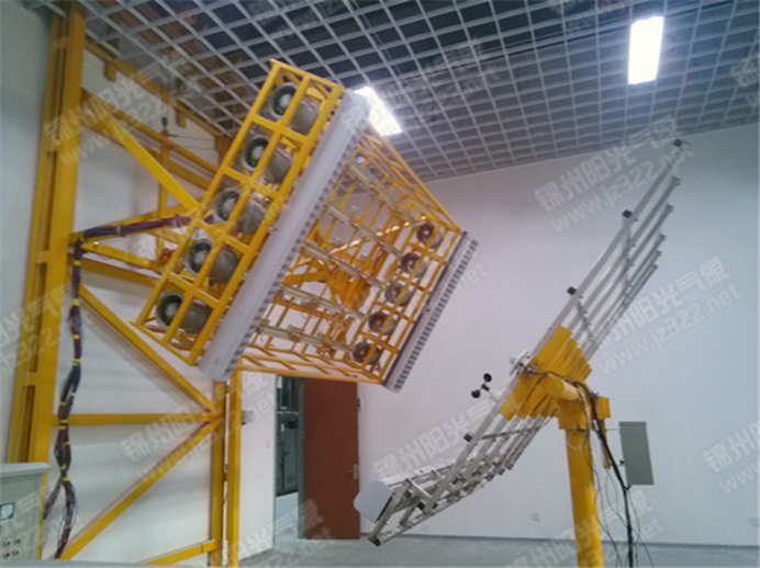 其中室内部分所提供的矩阵式人工太阳模拟器是我公司根据海尔要求设计生产的新型产品,相较于国内现有产品具有更广泛的可调行及适用性。同时室内部分在太阳模拟下试验时,系统全部用自动控制与摄像系统完成。光跟踪传感器可保证台面与光源垂直照射。此外全自动旋转控制台可根据实验需要,自动调整实验台面与光源指定的入射角度。