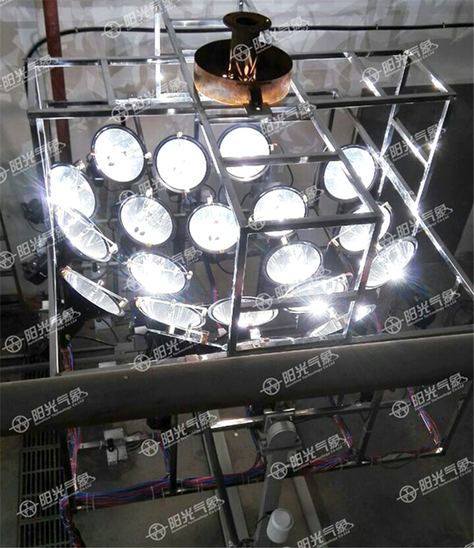 该模拟器是国内首创的大型多点聚光式太阳模拟器,采用环形聚光模式模拟真实太阳的发光特性,可以实现对太阳照射模拟的高温试验,聚光温度可达到1000℃以上。该模拟器具有高辐照度、大尺寸光斑、均匀性和稳定性良好、长时间持续工作等优势,各项技术指标均处于国内领先水平。聚光式太阳模拟器的投入使用,有效提高了南京工业大学教学试验能力,对我国模拟测量工作具有重要意义。