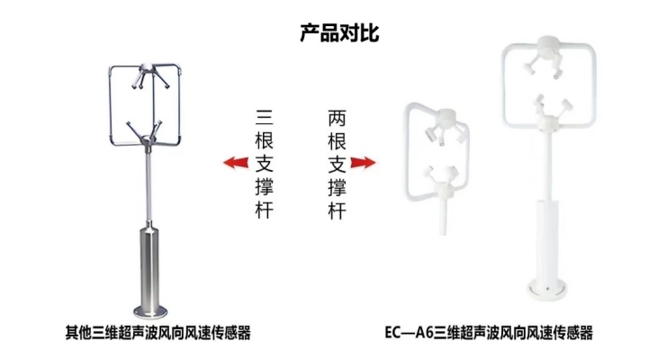 两根支撑杆对比三根支撑杆的优势在于当实际测量风向风速时,减小支撑杆产生的风阻,使测量结果更精确。