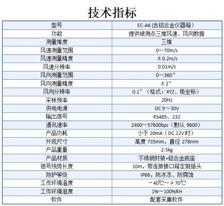 EC-A6三维超声波风速风向传感器