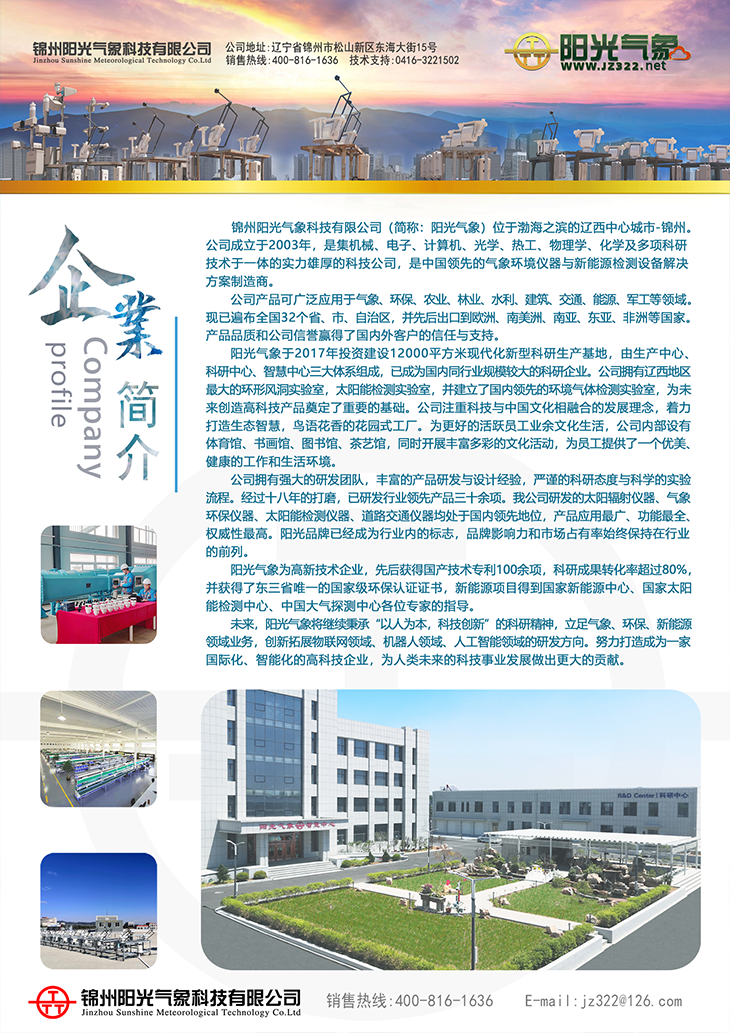 本产品是针对光伏发电站研发生产的一款最新型一体化光伏环境监测仪,该设备采用新型一体化结构设计,测量精度高,安装使用方便,可采集多种要素:含太阳辐射(水平/斜面)、温度、湿度、风速、风向、大气压力、背板温度等要素,要素可按需定制。