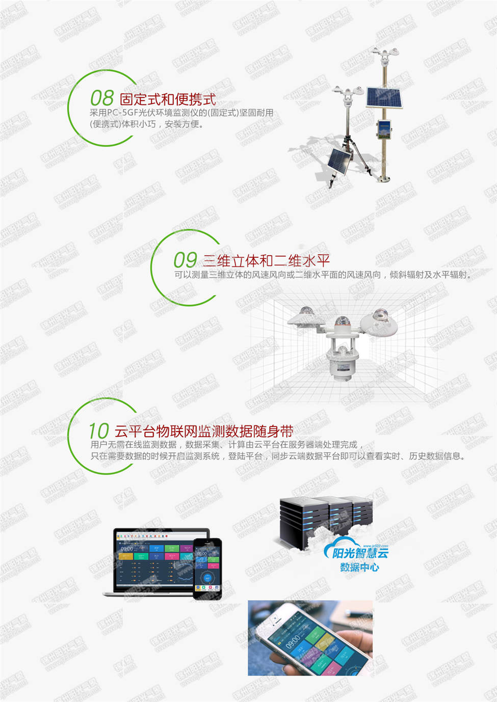 PC-5GF分布式光伏环境监测仪适用于太阳能光伏发电、太阳能资源评估、气象生态环境监测、环保与农林业、建筑、科研教育等领域。