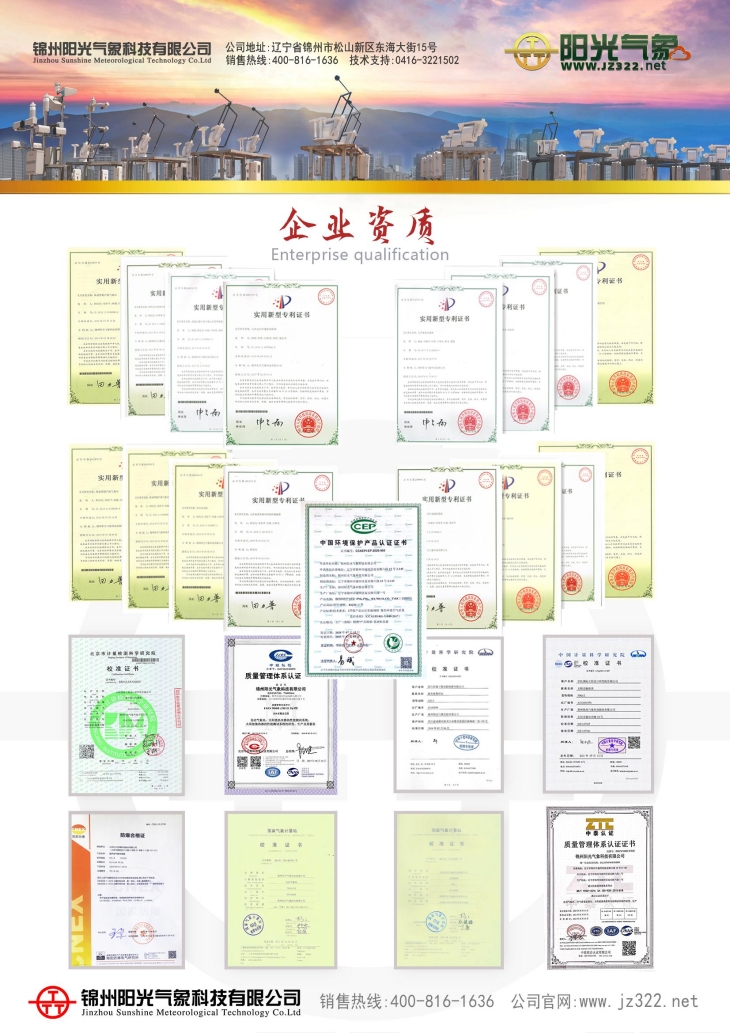 10、系统按室外观测仪器标准设计,采用铝合金材料制造,具有防风,防水,抗腐蚀,耐高低温的特点,适合在野外高原等气候恶劣的环境使用。可靠的三防设计,防护级别达到IP65级,完善的防雷击、抗干扰等?;ご胧?。
