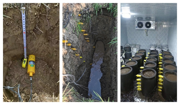 土壤湿度即可单点监测,也可多点梯度监测。测试时需将土壤湿度传感器的探针垂直插入被测土壤的断层,若临时监测也可以直接将传感器垂直插入土壤,但需注意,无论哪种测量方式,都要使探针充分与土壤接触,以保证测试数据的准确性。