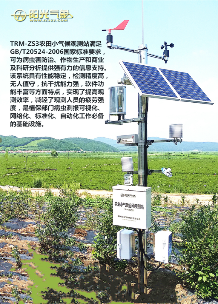 TRM-ZS3农田小气候观测站满足GB/T 20524-2006国家标准要求,可为病虫害防治、作物生产和商业及科研分析提供强有力的信息支持。该系统具有性能稳定,检测精度高,无人职守,抗干扰能力强,软件功能丰富等方面特点。