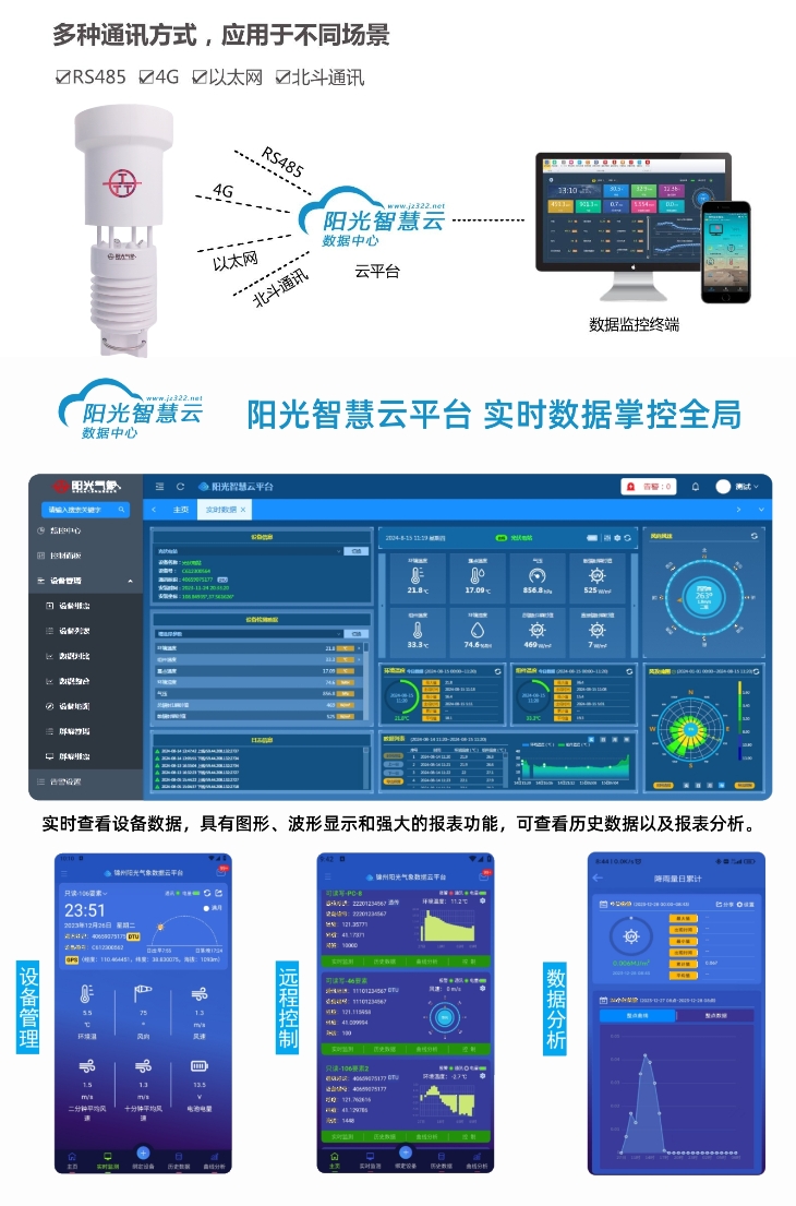 PC-8K气象六参数环境监测仪是我公司自主研制的一款测量多种气象要素的一体化气象站,可同时测量大气温度、大气湿度、风速、风向、气压、雨量等主要气象要素。其中雨量为高精度翻斗式雨量传感器,其特点是精度高,响应速度快,串口输出,方便用户直接通过PC或外接仪器进行采集。