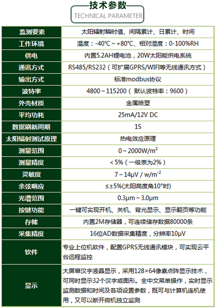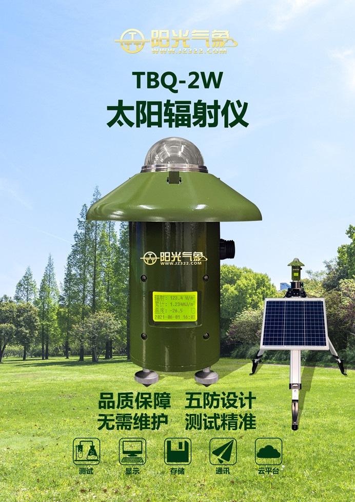 TBQ-2W太阳辐射仪是阳光气象公司研发生产的手持辐射仪,它具有体积小、重量轻、精度高、性能稳定等特点,这款产品集监测、显示、存储、通讯等功能于一体,是一款能手持监测的太阳辐射仪。TBQ-2W的研发解决了常规手持辐射仪测量精度低,而高精度辐射产品又系统庞大的问题。另外本产品采用了防腐、防爆、防水、防震、防尘等高防护级别的设计理念,可满足各种特殊环境的使用需求,是军事、航海、科研等领域产品。