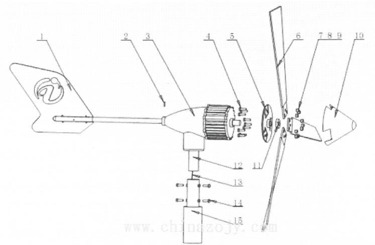 钢丝拉绳松动 叶片固定螺栓松动 受外力风轮叶片缺损 叶片附着物造成不平衡 |
