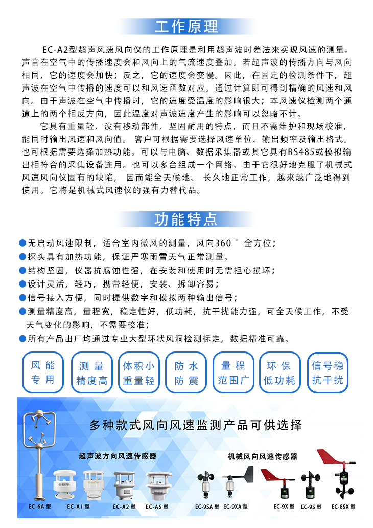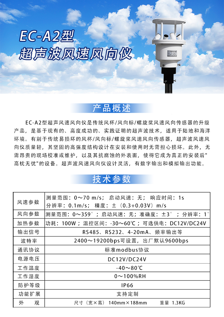EC-A2型超声风速风向仪