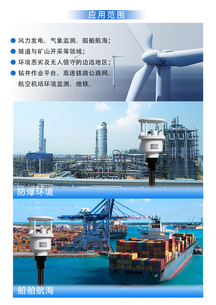 EC-A2型超声风速风向仪是传统风杯/风向标/螺旋桨风速风向传感器的升级产品,是基于现有的、高度成功的、实践证明的超声波技术,适用于陆地和海洋环境。有别于传统易损坏的风杯/风向标/螺旋桨风速风向传感器,超声波风速风向仪质量轻,其坚固的高强度结构设计在安装和使用时无需担心损坏。此外,无需昂贵的现场校准或维护,以及其抗腐蚀的外表面,使得它成为真正的安装后"高枕无忧"的设备。超声波风速风向仪设计灵活,有数字输出和模拟输出功能。