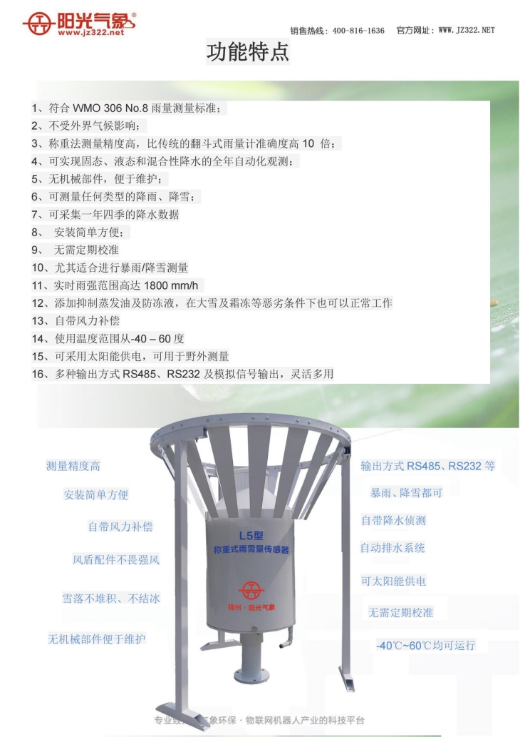 L5型称重式雨雪量传感器