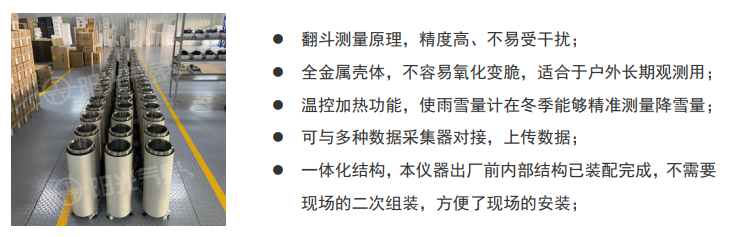 L6型融雪雨量计可以与我公司PC系列数据采集器配合使用,实现雨雪量数据的自动采集、显示、存储、传输等。搭配感雨雪传感器,还可以完成自动判断降水的情况,进而实现从雨雪感知到雨雪精准测量的全过程监测。