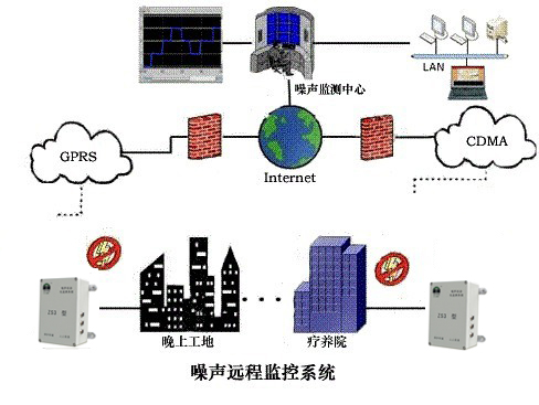 噪声在线监测系统主要由三部分组成:现场噪声数据采集,通信设备及通信平台、调度中心。